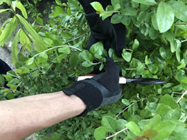こだわりの1つは大きく育ったヘナの葉のみを剪定ばさみでカットすること。