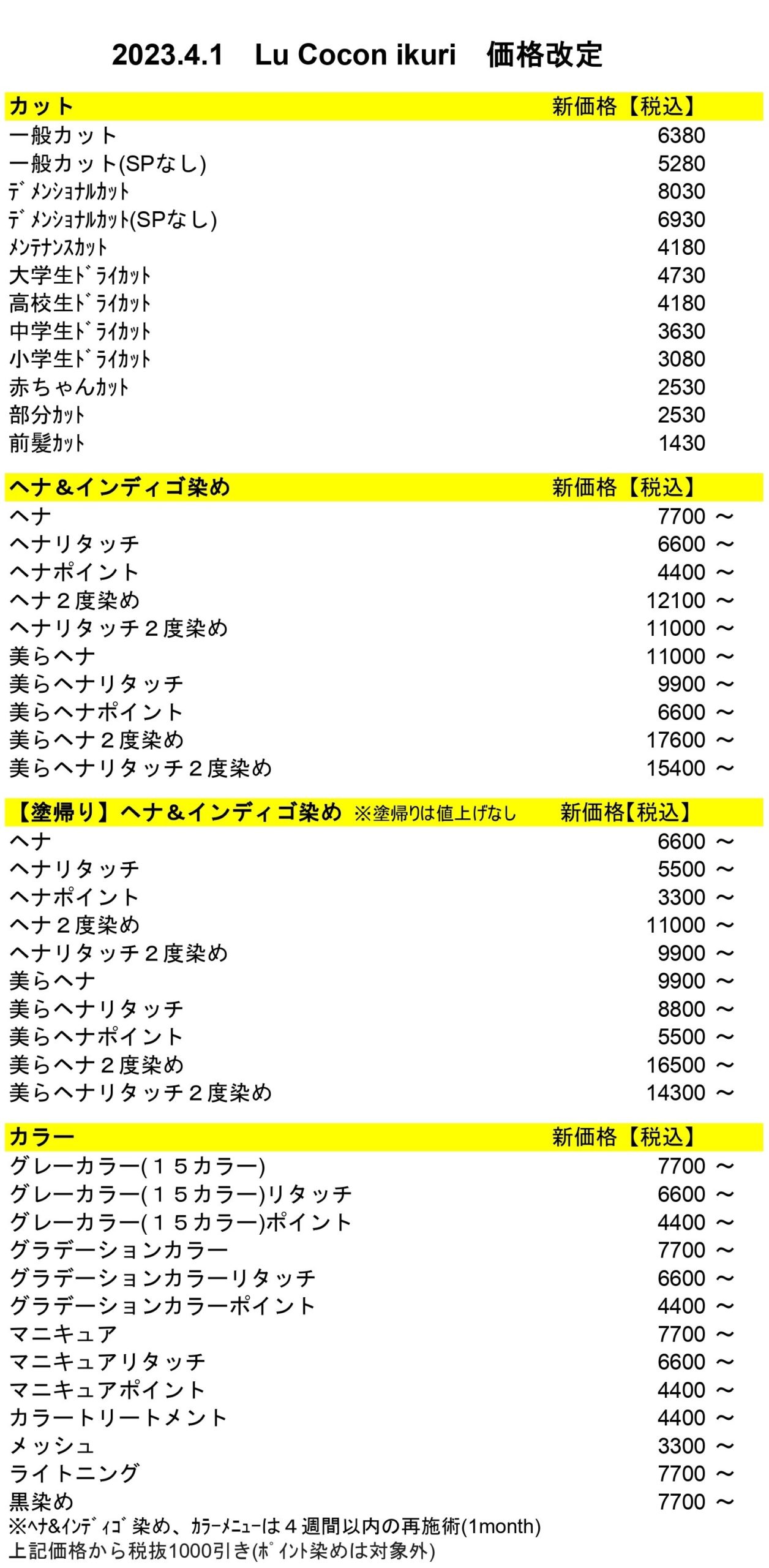 ◆価格改定開始日◆